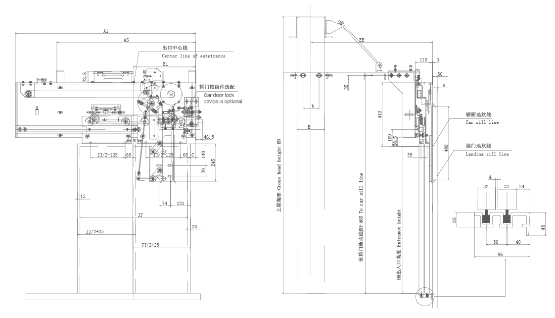 4、采用無(wú)連桿異步門(mén)刀,選配轎門(mén)鎖,安裝調(diào)試方便