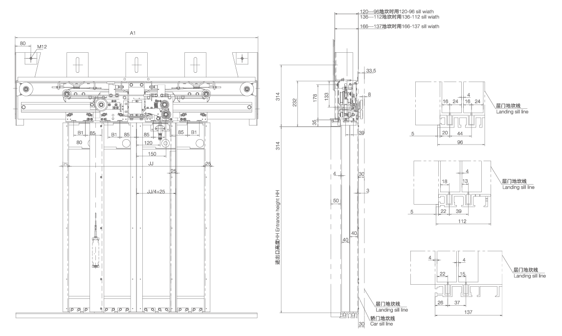 2、采用重錘關門方式,重錘和導桿置于門板邊緣